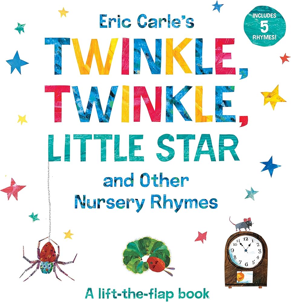 Twinkle, Twinkle, Little Star and Other Nursery Rhymes is a lift-the-flap book featuring Eric Carle’s signature collage artwork, this collection of classic nursery rhymes engages children with interactive flaps and vibrant illustrations, making it a delightful way to introduce early literacy.